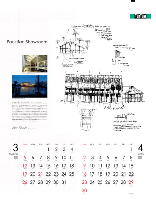 世界の著名な建築家のドローイングスケッチをモチーフに使い 機能的で洗練されたカレンダーを制作快適な住生活空間を提供するトステムをアピールしています