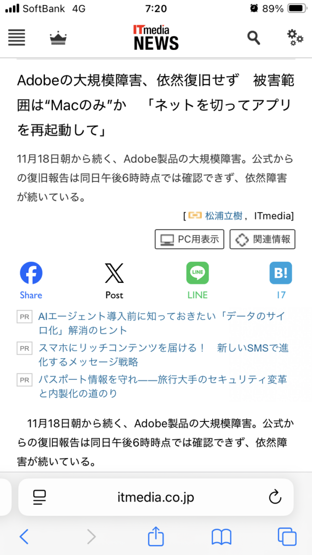 Adobeシステム障害発生…こんなの初めて!|2025.11.19