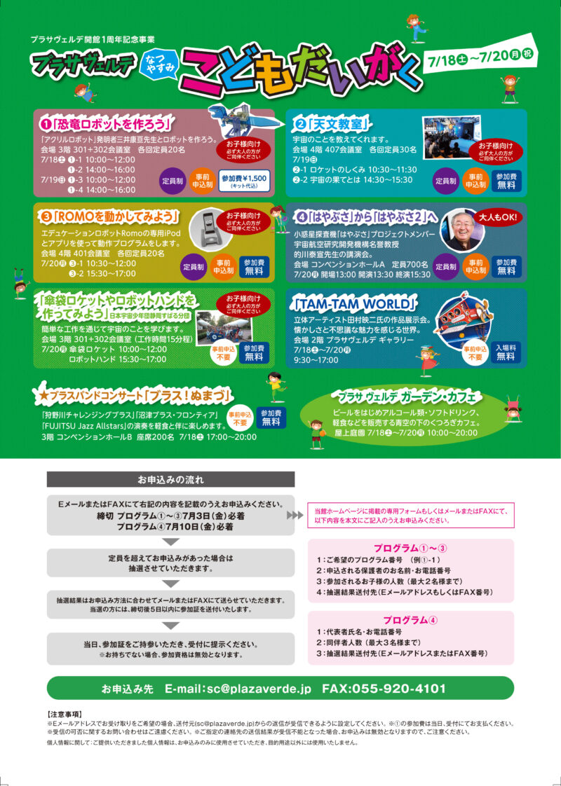 「プラサ ヴェルデ なつやすみ こどもだいがく」 のロゴおよびフライヤーを制作いたしました。